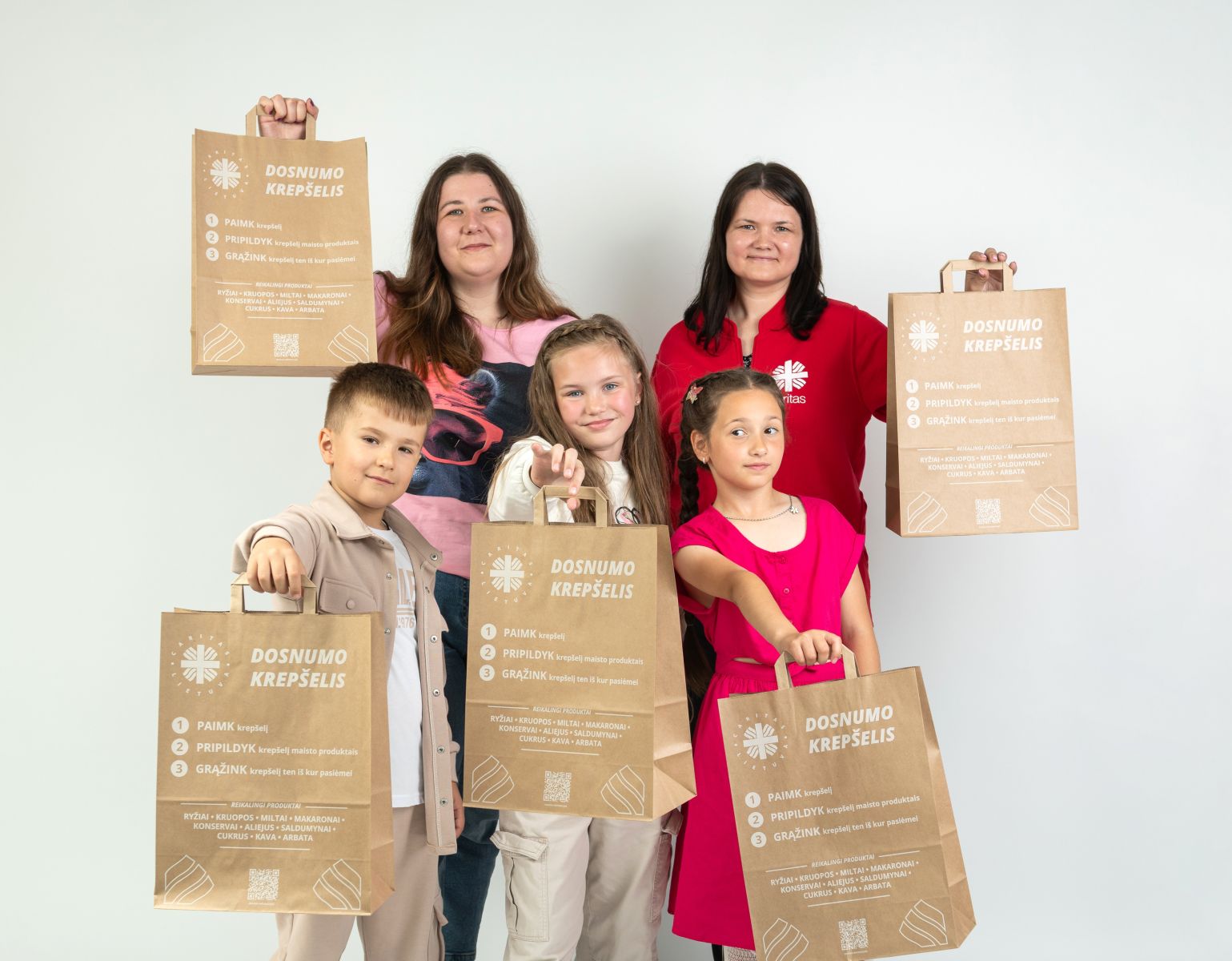 „Dosnumo krepšelius“ Caritas kviečia pildyti kasdienio vartojimo maisto produktais. Laukiamiausi – aliejus, mėsos ir žuvies konservai, kruopos, cukrus, kava, arbata. Pasak savanorių, saldumynais ypač džiaugiasi vaikai, kurie retai jų gauna.