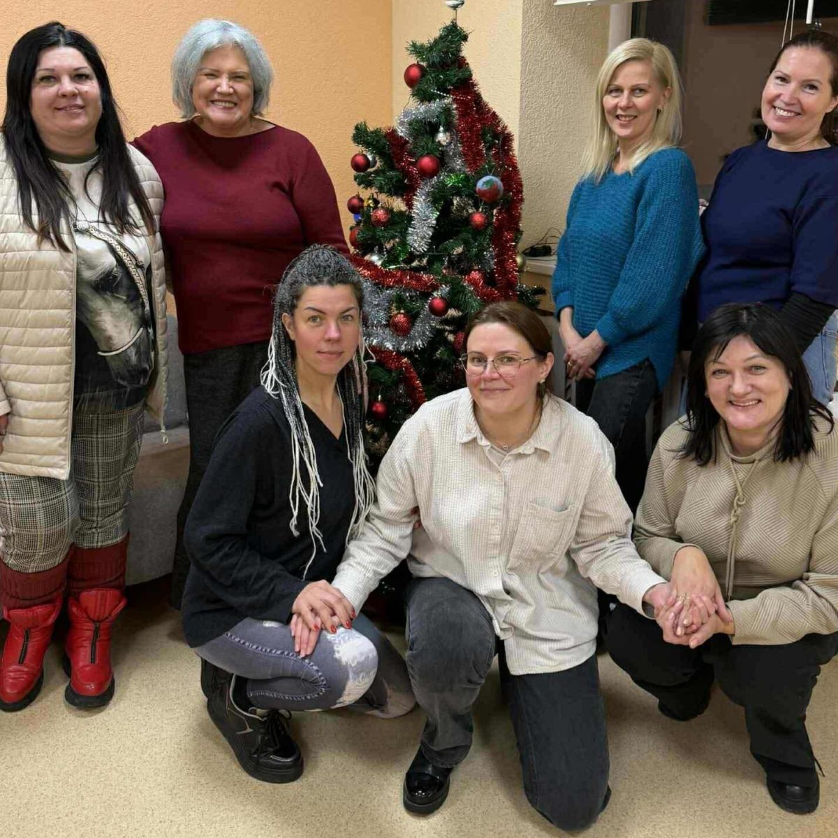 Emocinės pagalbos linijos "Caritas klauso" savanoriai Panevėžyje, Stefanija Burbienė - antra iš kairės antroje eilėje.