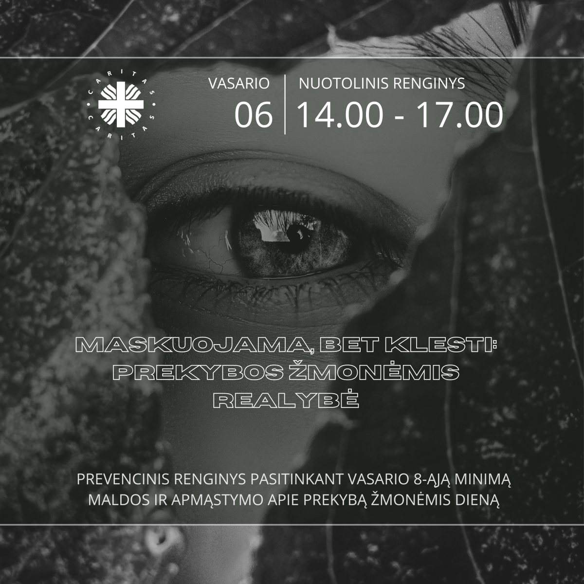 Artėjant Pasaulinei maldos už prekybos žmonėmis aukas dienai, vasario 6-ąją Lietuvos Caritas sukvietė visus, neabejingus šiai problemai į nuotolinį renginį „Maskuojama, bet klesti“ prekybos žmonėmis realybė“.